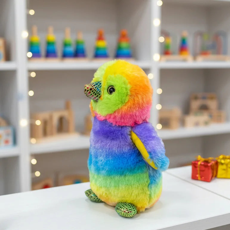 ✨ Features: Layered rainbow colors, fuzzy texture, unique textured beak and feet, and lightweight