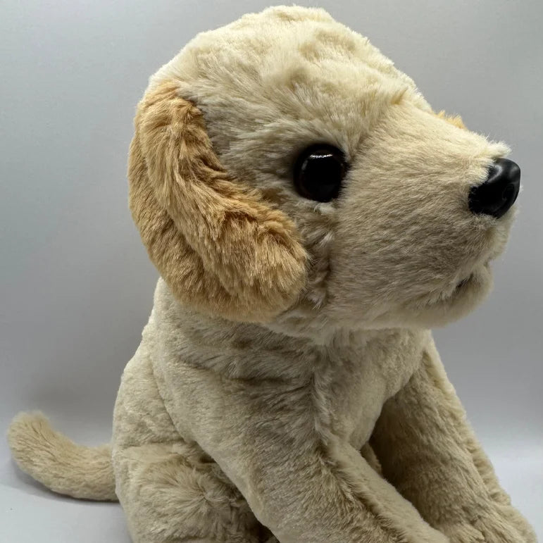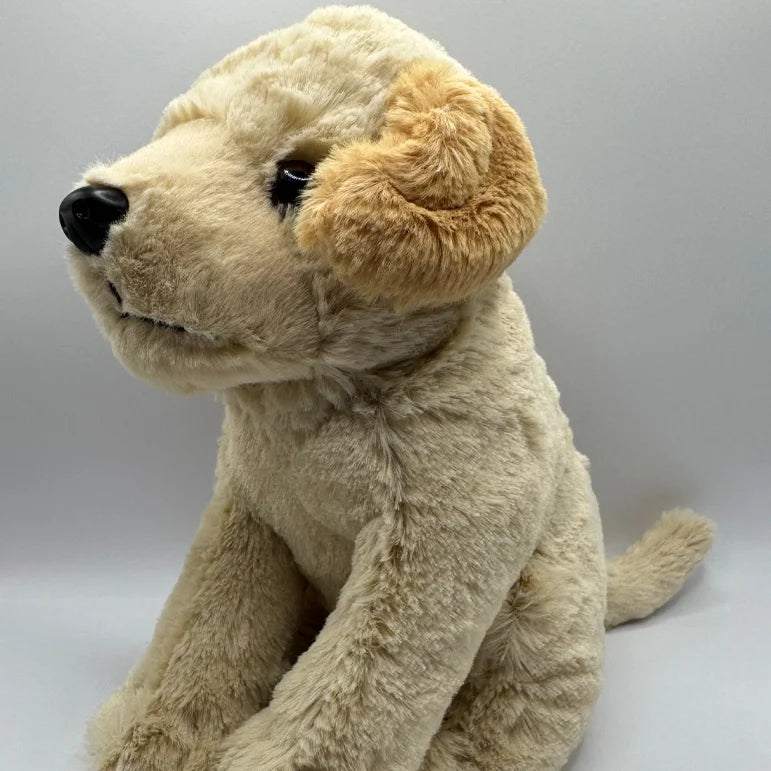 Say hello to Buddy Boo , the plush puppy who is ready to be your loyal companion! Buddy Boo has the classic golden coloring of a beloved Labrador, complete with irresistibly soft, floppy ears and the sweetest dark eyes. This adorable friend is crafted from 100% polyester material , making his fur feel velvety and perfect for snuggles, and he's filled with recycled fiber , so you can feel good about your eco-friendly choice. Whether he's sitting patiently by your bed, joining in on imaginative playtime adventures, or being the best naptime pal, Buddy Boo's gentle expression and comforting softness will make him a cherished part of the family for years to come.
