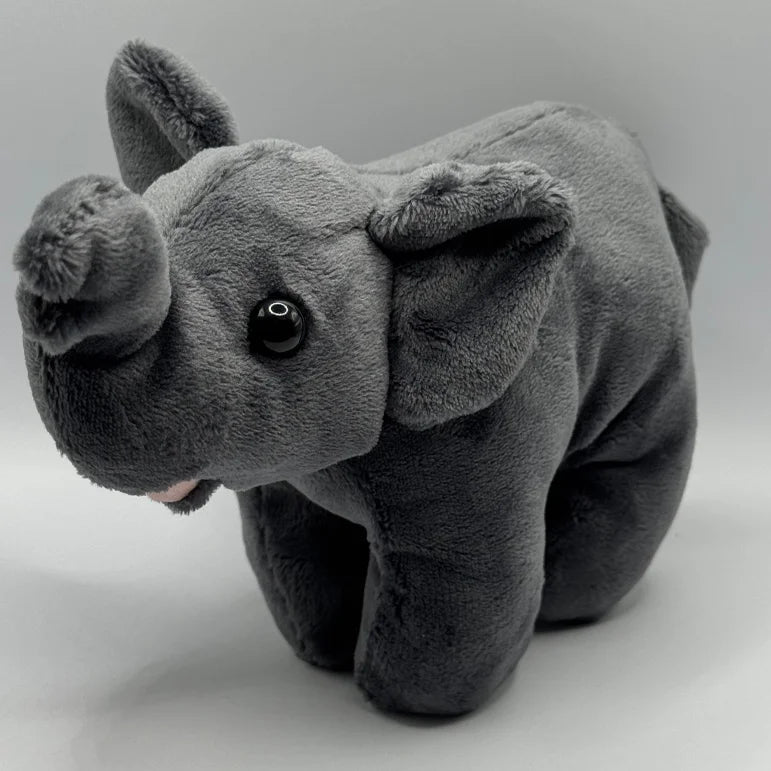Meet Cuddlephant, the incredibly charming plush elephant! With his big, floppy ears and a playful trunk raised high, he's ready for any adventure. Measuring 19cm in length and 13cm in height, this soft grey elephant is perfectly sized for little hands to hug and carry. His adorable wide-eyed gaze and subtle pink mouth give him a gentle, loving personality that children will instantly connect with. ✨😊