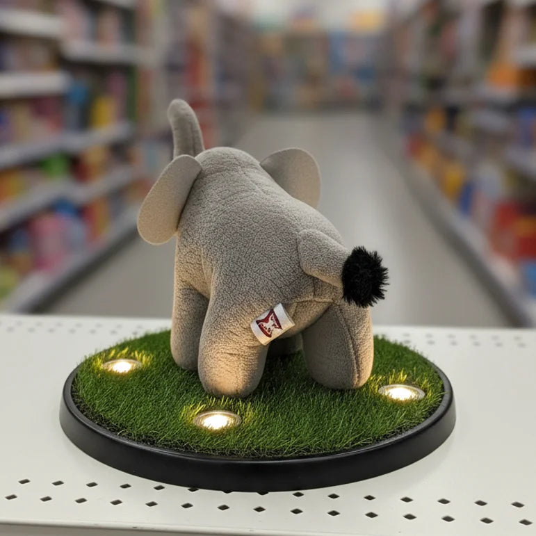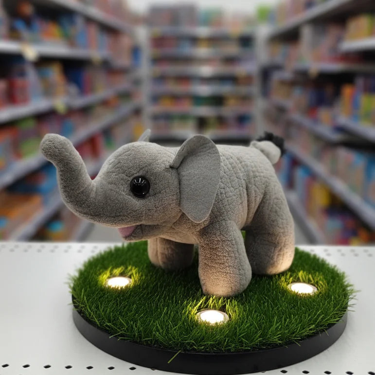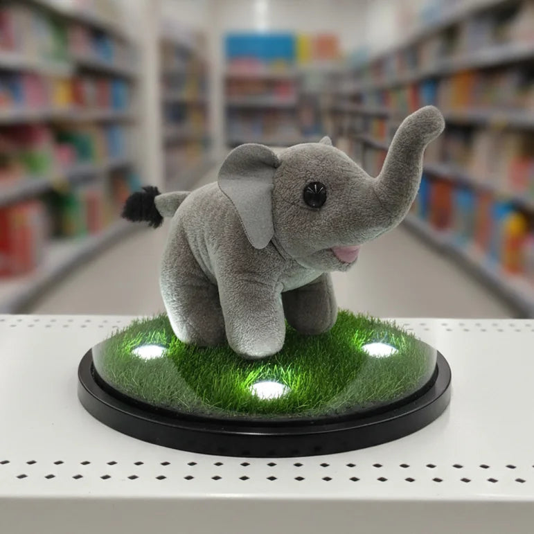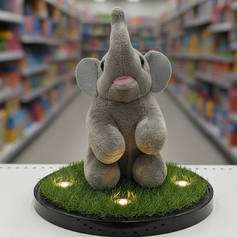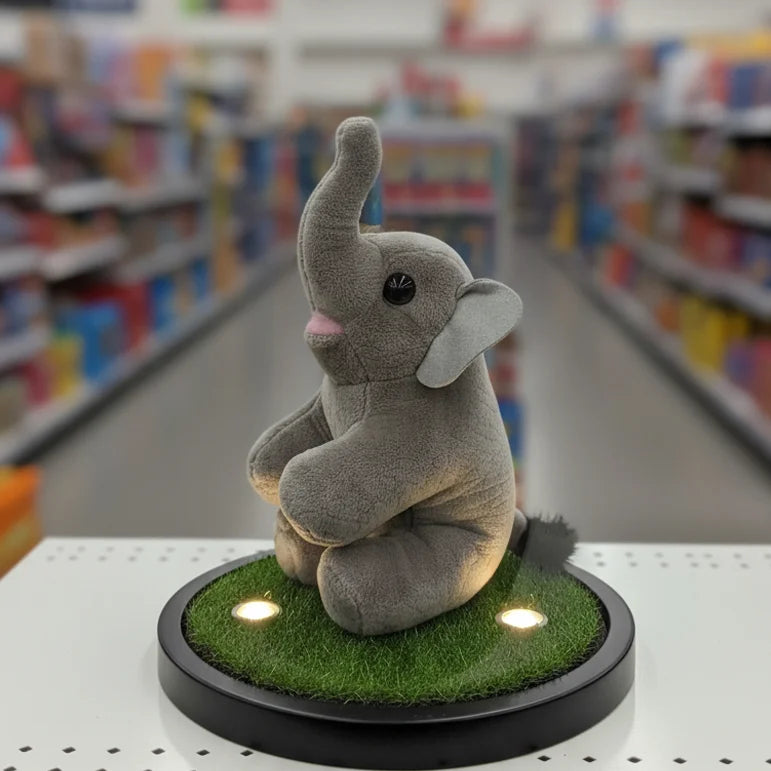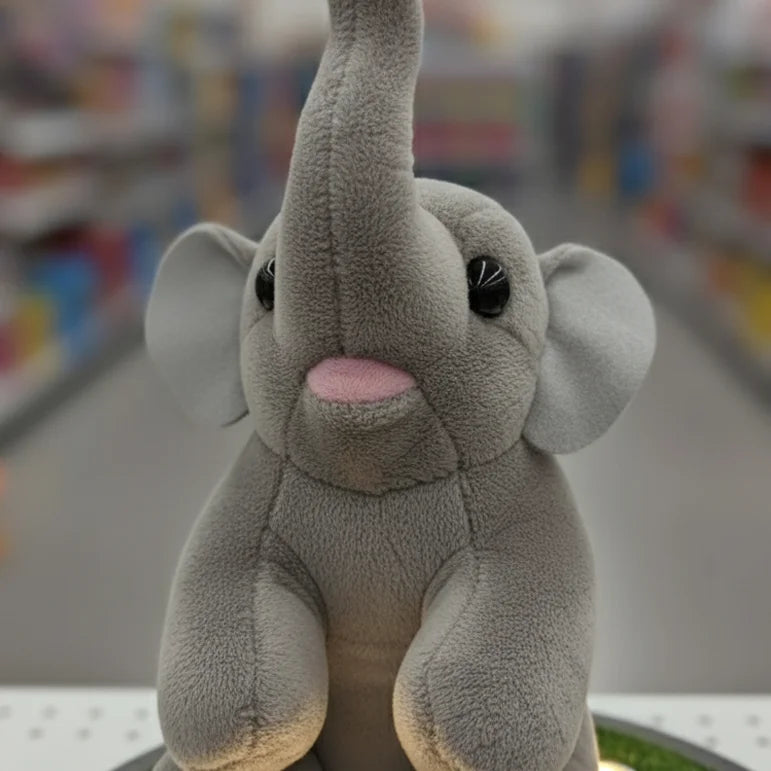 Say hello to Trunky Glow , the elephant plush with a spirit as big as his ears! Trunky Glow stands out with his wonderfully soft, gray plush fabric and his impressive, up-raised trunk , which is often a symbol of good luck and happiness! His bright, inquisitive eyes and little pop of pink on his mouth give him a truly endearing look. Just like his plush pals, Trunky Glow is made from reliable 100% polyester material and is responsibly filled with recycled fiber , offering a soft, huggable texture that you can feel great about. This cheerful elephant is perfect for inspiring imaginative play, decorating a nursery, or simply providing a comforting cuddle. Bring Trunky Glow home and watch your child reach new heights of fun!