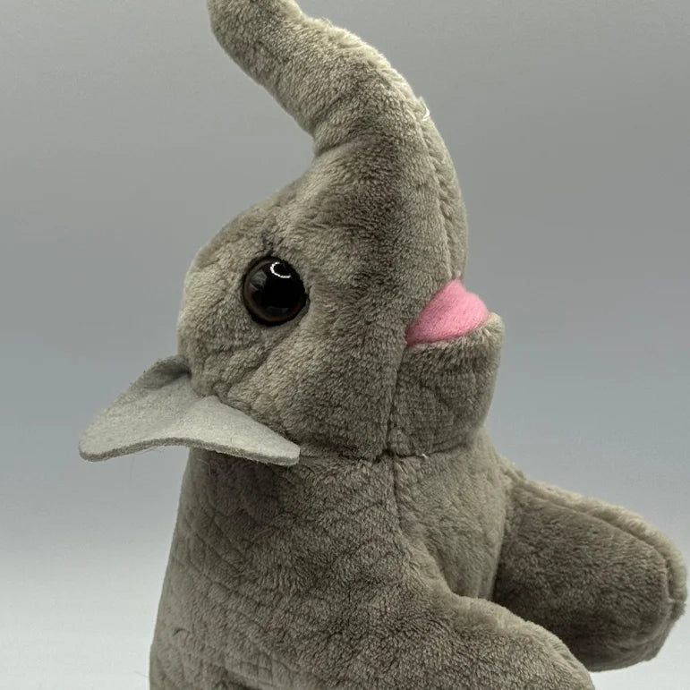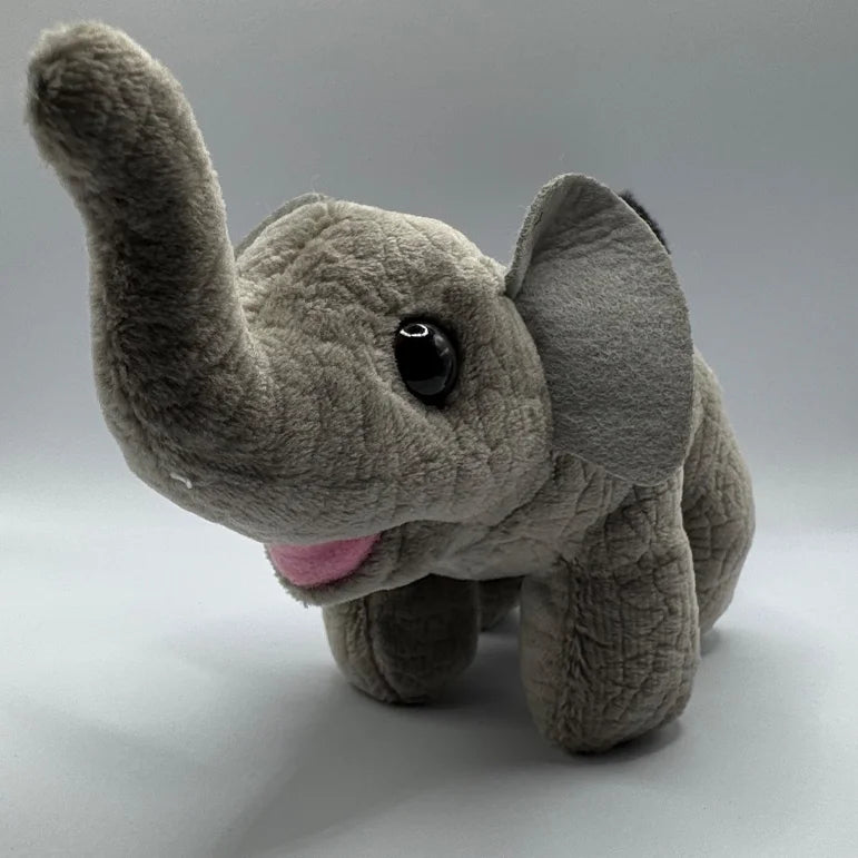 ✨ Features: Soft gray plush, long up-raised trunk, and lightweight