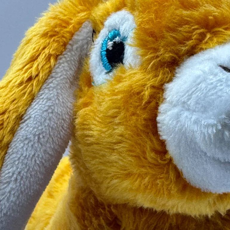 ✨ Features: Unique sunny yellow color, soft texture, bright blue eyes, and lightweight