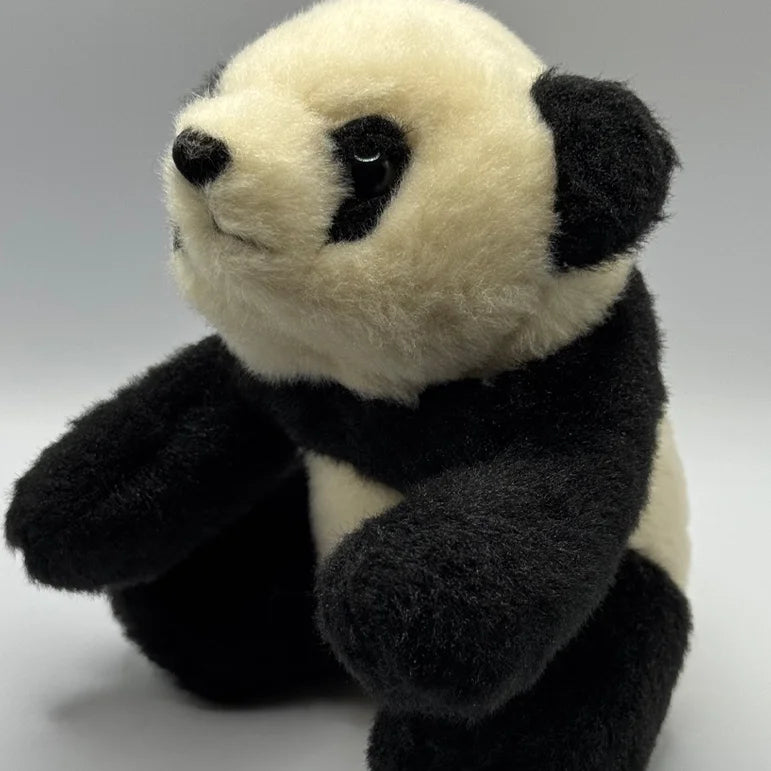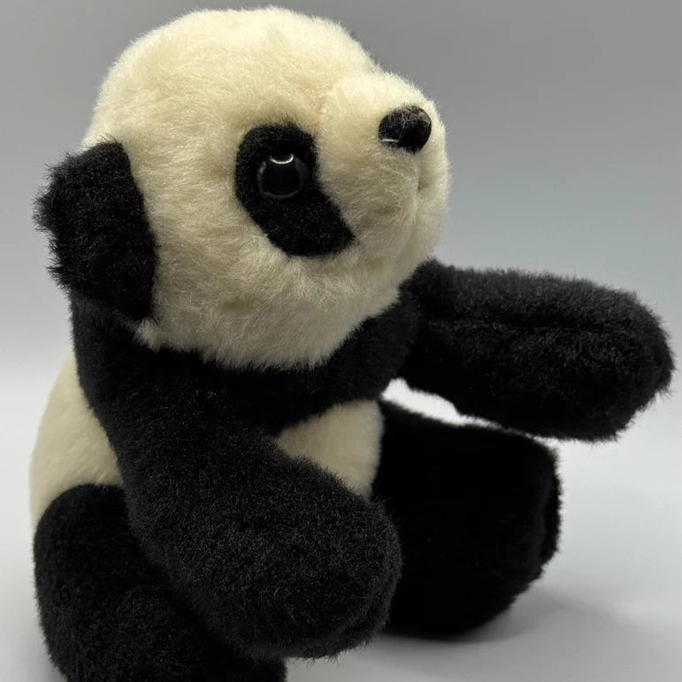 Say hello to Pandy Paws , the sweetest little panda bear you'll ever meet! With his iconic black eye patches and ears contrasting against his fluffy white face, Pandy Paws has an instantly lovable and gentle expression. He is designed to be the ultimate companion, offering perfect softness thanks to his durable 100% polyester material . Plus, he's responsibly filled with comforting recycled fiber , making him both cozy and an eco-conscious choice. Pandy Paws is perfectly shaped for snuggling up to during movies, accompanying children on long car rides, or sitting patiently on a shelf until it's time for a hug. Bring home this timeless friend and prepare for endless cuddles!