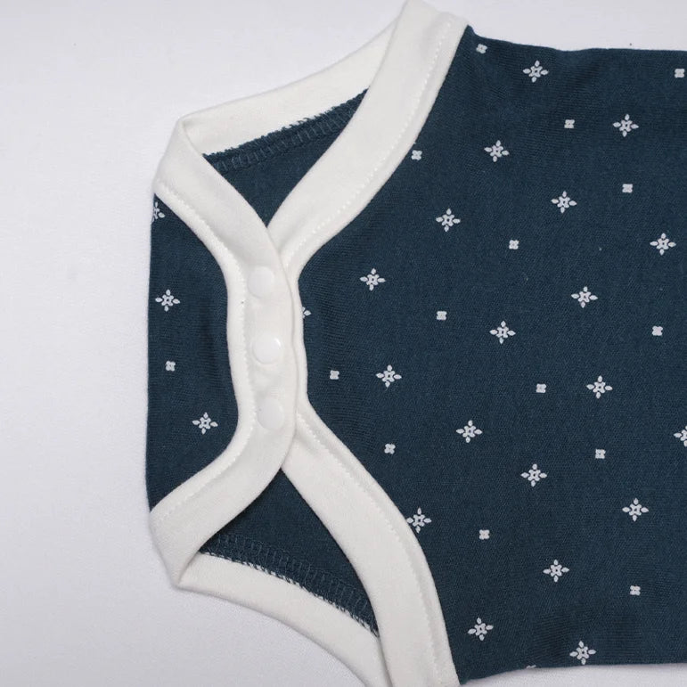 We absolutely love the Milky Way Onesie because it proves that baby basics can be chic and timeless! The deep navy color and elegant star pattern offer a refined, gender-neutral look that is both stylish and wonderfully easy to match. For parents, the functionality is key: the envelope neckline is a true lifesaver for fast dressing (or undressing in case of messes), and the secure snaps guarantee swift changes. It's incredibly soft against delicate skin, ensuring all-day and all-night comfort, while the durable fabric and high-quality trim guarantee it stands up to frequent use. It’s a comfortable, durable, and subtly sophisticated piece perfect for your little star.