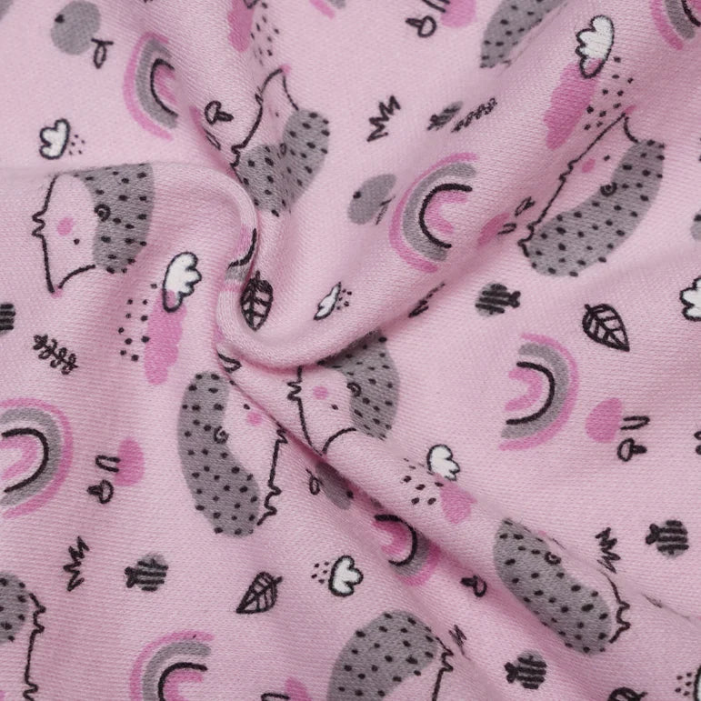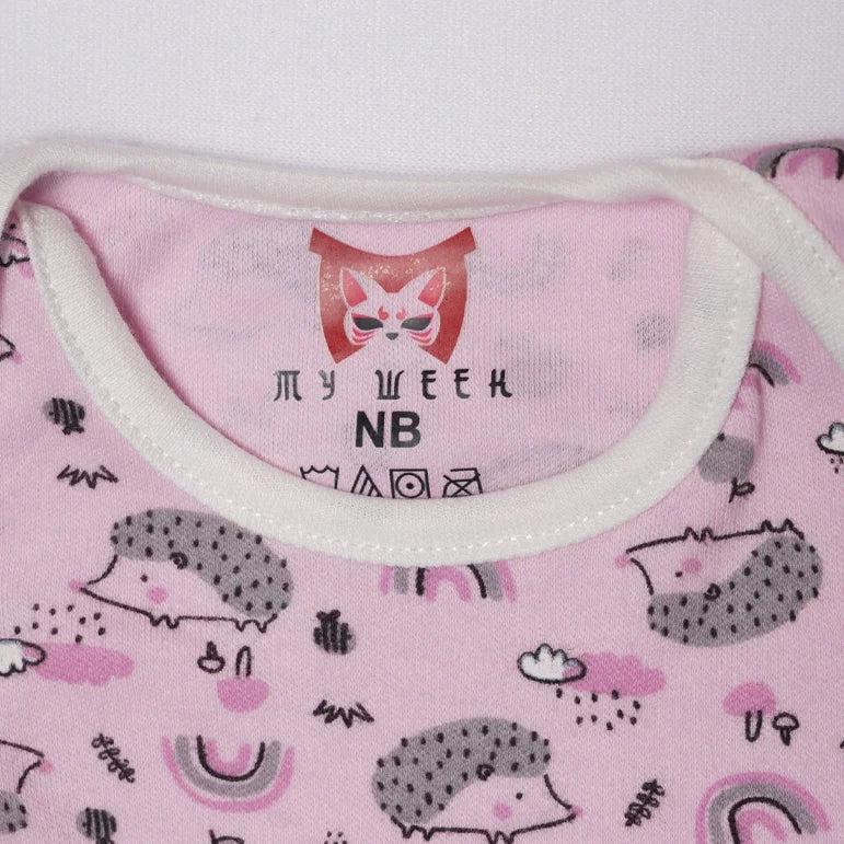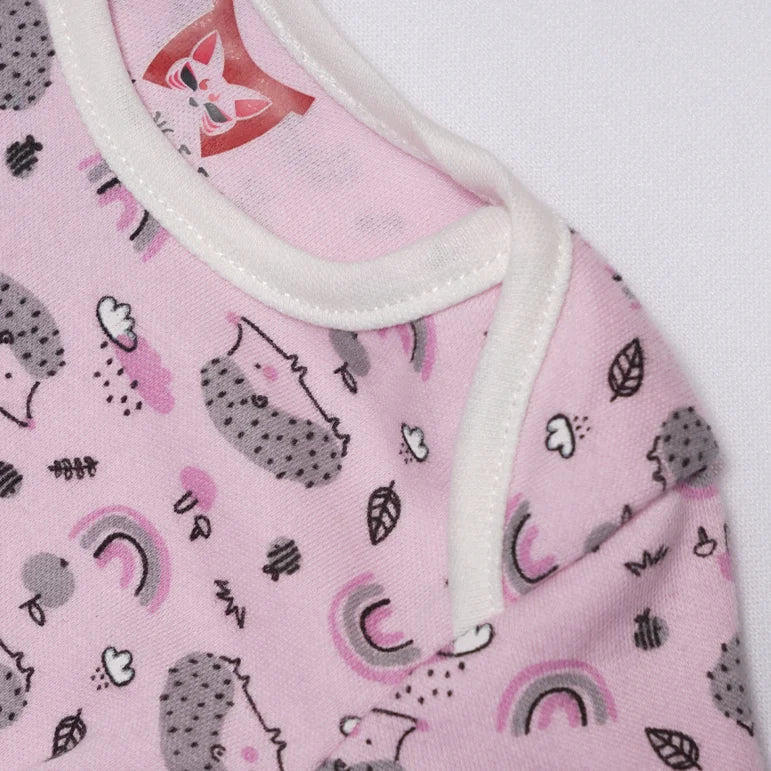 Introduce a burst of whimsy and charm with the delightful Happy Broccoli Onesie. This short-sleeve bodysuit features a sweet light pink background covered in an absolutely enchanting pattern of playful grey hedgehogs, cheerful rainbows, and little clouds. The whimsical print is framed by a clean, classic white trim around the envelope neckline (lap shoulder), arm openings, and leg openings, providing a crisp contrast. Designed for maximum convenience, the bodysuit includes secure snap closures at the bottom for quick and easy diaper changes. Crafted from soft, breathable fabric, the Happy Broccoli Onesie is the perfect cozy base layer or a charming stand-alone outfit for your happy little sprout.