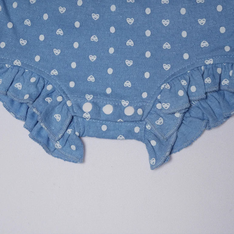 We absolutely love the Infant Ruffle Creeper Pair because it perfectly combines timeless style with irresistible girlish charm! The classic polka dot pattern is always chic, and the contrasting colors (soft blue and deep berry) offer great versatility for different occasions. We especially adore the delicate ruffle detail—it adds the perfect touch of sweetness and flutter. Beyond the cuteness, these creepers are incredibly practical: the sleeveless design is perfect for summer, and the quick-access snap closures are a true lifesaver for fast changes. This pair provides exceptional value, offering two beautiful, comfortable, and durable outfits ready for any sunny day adventure.