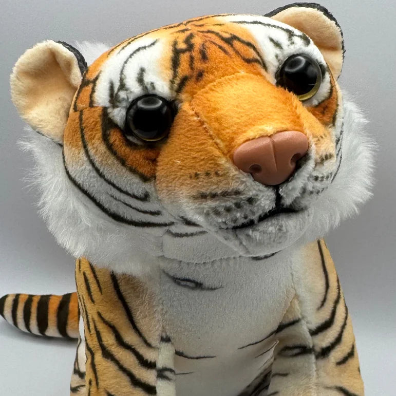 ✨ Features: Realistic orange and black stripes, soft texture, oversized eyes, and lightweight