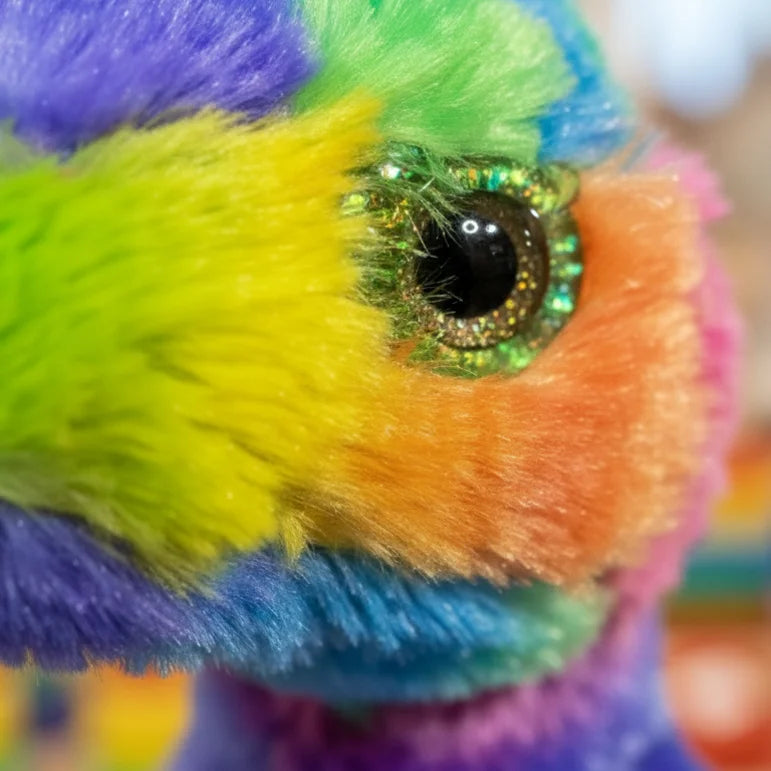 ✨ Features: Multi-colored plush, soft texture, glittering eyes, and lightweight